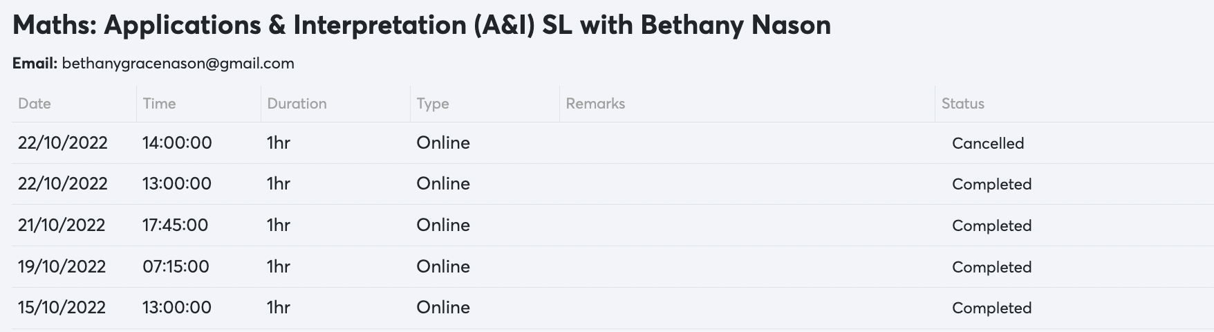 Once your tutor has booked a lesson on the Portal, you will be able to see the following details: