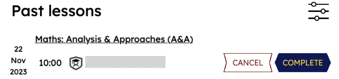 It is very important that you mark any completed lessons as "Complete" on the Portal as soon as possible after the lesson has taken place, and at the very latest on the last day of the month.